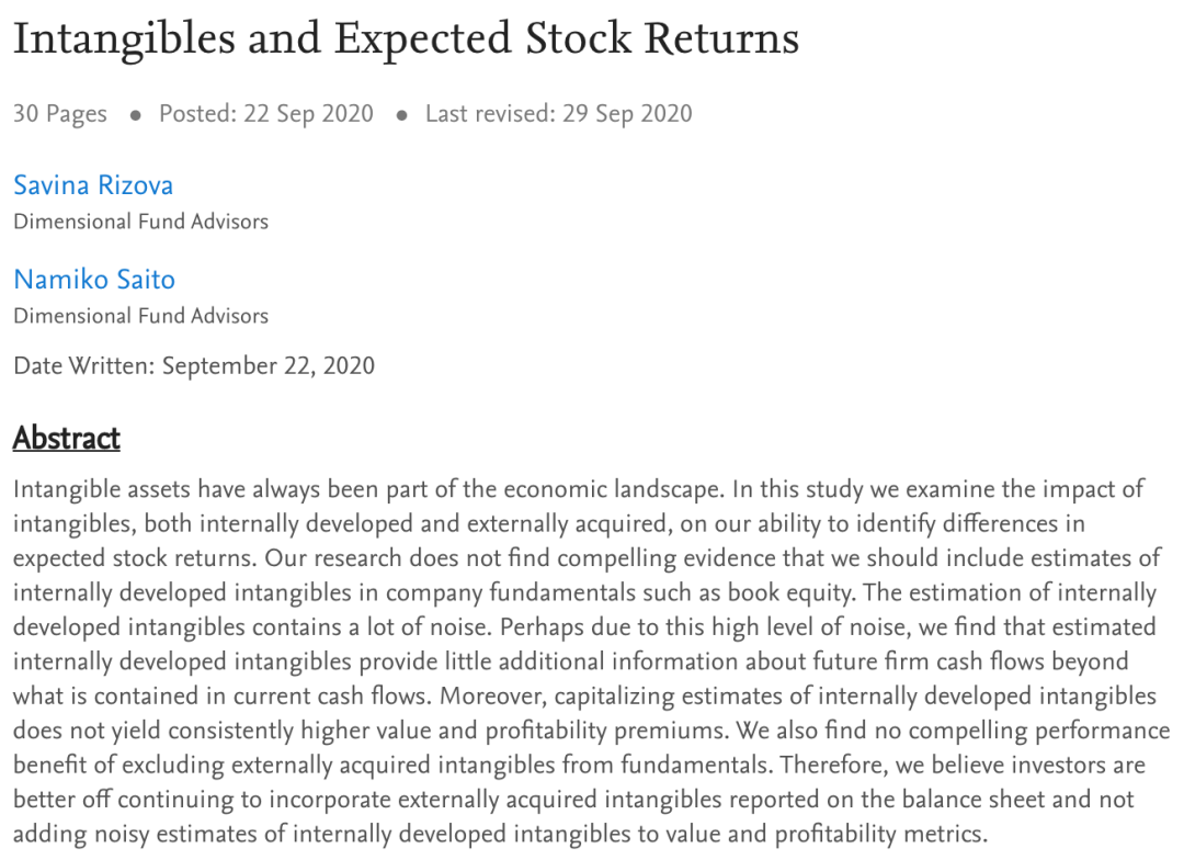 然而,Dimensional Fund Advisors的研究主管Savina Rizova发现情况恰恰相反:无形资产很难精确估值,它们带来的噪音实际上是无益的!