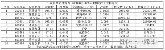 刘格菘管理的广发科技先锋基金四季度调仓明显。