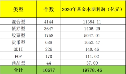 需要说明的是,天相投顾对于基金盈利规模的统计是根据2020年中报、三季报和四季报三个报表加总而成,和最终2020年年报披露的数据可能存在一定差异,这其中主要是因为不少去年成立的新基金没有公布中报、三季报或四季报导致,如果考虑到多数新基金去年盈利,2020年基金整体盈利应该达到2万亿元大关。