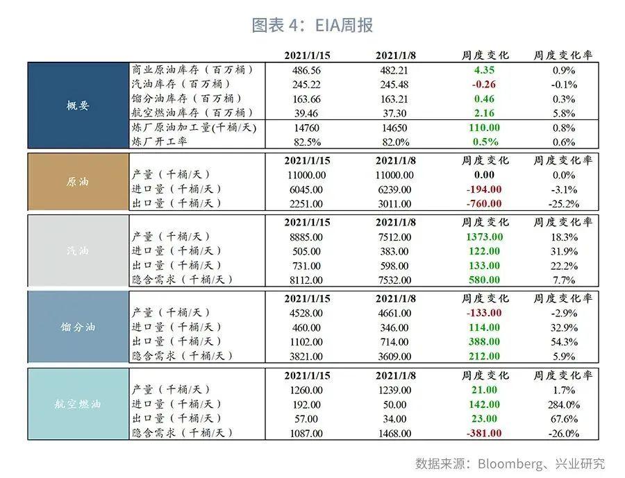 EIA报告利空油价。1月15日EIA报告表明,美国原油库存变化值连续5周录得下滑后本周录得增长,创2020年12月11日当周以来新高。需求方面,1月14日,美国总统拜登公布了1.9万亿美元的经济刺激计划提振了市场对经济复苏的信心,这项救助方案包括用于强化疫情应对与疫苗推行的4150亿美元、直接对家庭提供救助的约1万亿美元以及对受疫情冲击特别严重的小型企业与社区提供约4400亿美元。尽管拜登上任后大规模刺激计划的出台助推市场乐观情绪,疫情感染人数增多引起市场对于石油需求的担忧。且目前油价已经修复相对公允价值的低估后,短期进一步大幅推涨的动能减弱。