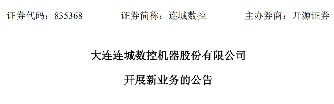 值得一提的是,1月12日,连城数控发布一份关于开展新业务的公告。