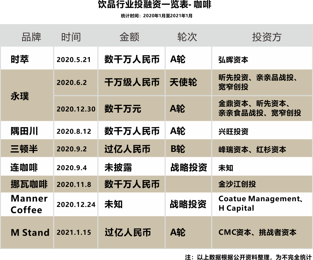 2020饮品业投融资盘点:多个品牌加入“融资亿元俱乐部”