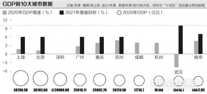 截至2021年2月1日,2020年的全国GDP前10大城市排名基本“落定”。
