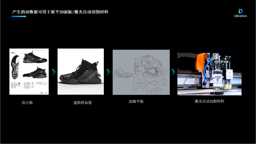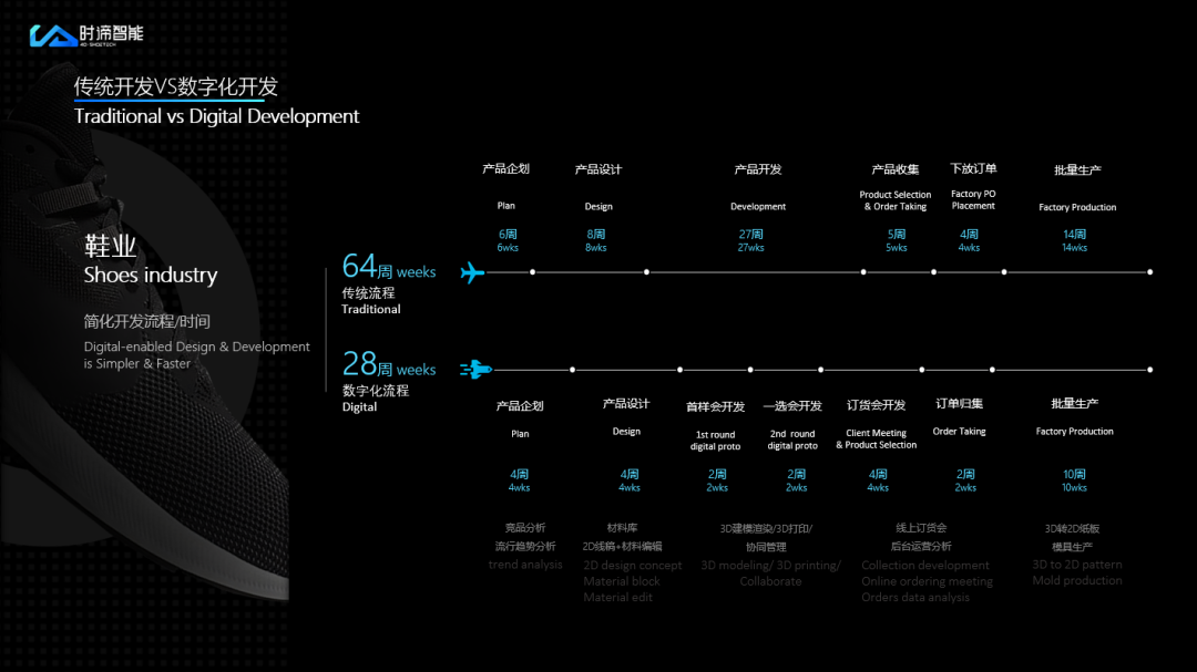 传统鞋类的设计到生产交付周期一般需要64周,而ideation平台的数字化设计能够更加高效完成关键性开发,缩短交付周期至28周。
