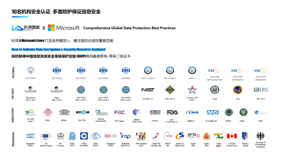 2020年5月,时谛智能成为微软加速器创业加速计划终身会员,后与微软一起打造全球范围内综合数据保护的最佳实践,同时也获得中国信息系统安全等级保护定级(DJCP)商用最高等级三级证书。时谛通过多重防护保证信息安全,致力于打造业界最深入、最全面的数字资产保护实践体系。