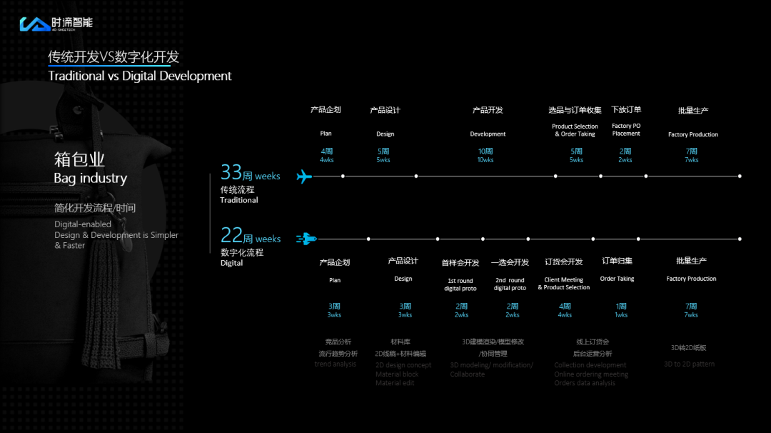 以鞋类产品设计开发这一环节为例,需要经历设计稿-样品试做-开会样-销售样-确认样-大货样的流程,品牌内部各部门、原料供应商、制造工厂之间仅就前期样品的试做到确认样这一环节的修改意见沟通协作就需要耗时约16周。