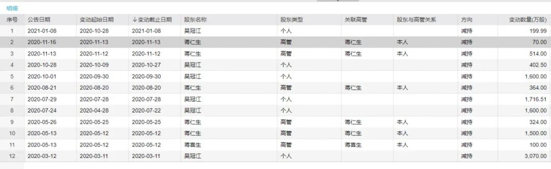 然而,2020年以来,智飞生物的实控人和重要股东却已大举减持123亿元。到今年1月8日,重要股东吴冠江还在减持,而就在2个月前的2020年11月,公司控股股东、实控人蒋仁生也还在减持。