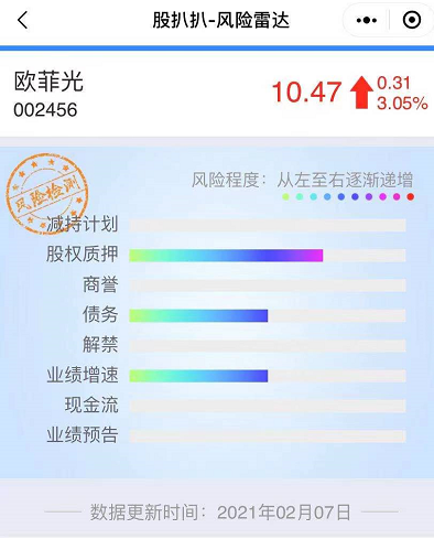 从股扒扒程序中,我们可以看到欧菲光还有其他风险。