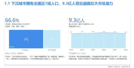 根据《TalkingData:2020年下沉市场人群洞察报告》显示,下沉市场的消费群体占据全国人口的七成左右,总规模达到9.3亿人。庞大的数字背后蕴藏着巨大的消费潜力,而且购买力上还在不断上升。