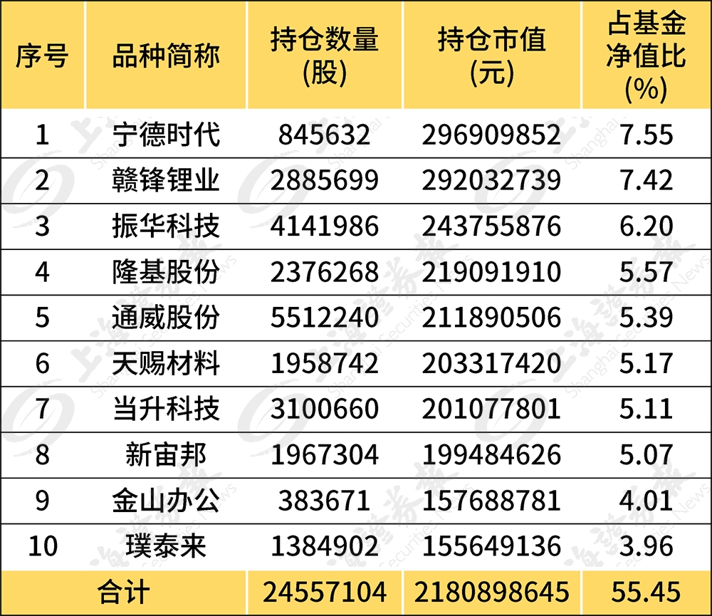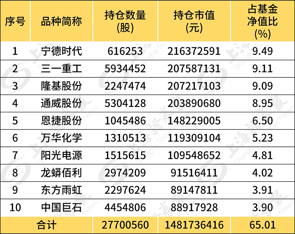 从上述绩优基金的业绩归因看,不少新锐基金经理看对方向后重仓下注,最终获得了丰厚收益,以农银工业4.0混合基金为例,全年始终押注新能源汽车板块,以下是该基金的前十大重仓股(截至2020年底)。