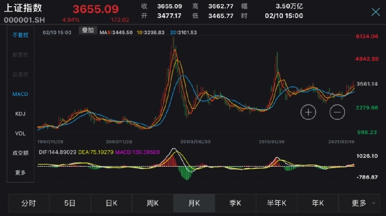 在春节前最后一个交易日,上证指数收盘于3655.09点,维持了强势格局。而从1997年以来上涨指数的走势来看,在2007年和2015年出现了两波历史性大牛市,其他时候表现更多是震荡起伏格局。