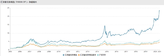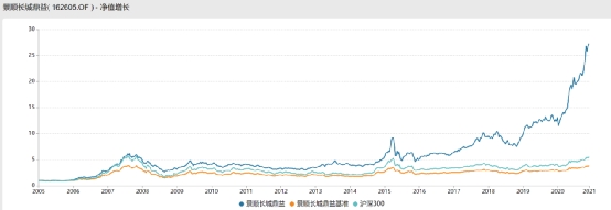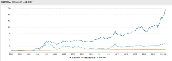 数据显示,该基金在2004年8月11日成立,先后经历了9位基金经理,到2021年2月10日的回报已经达到4383.33%。这也是目前基金行业唯一一只成立以来收益率超过40倍的基金。如果当时某位持有人花10万元认购且一直持有至今,目前已经438万多,厉害。这只基金的年化收益率也达到25.89%。