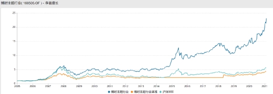 博时主题行业也是2005年成立,成立以来收益达到2212.9%。首任基金经理詹凌蔚两年多时间投资回报166.75%,排在前三分之一。邓晓峰管理博时主题七年多时间,累计回报达198.77%,仅次于华夏大盘精选排名第二。在邓晓峰奔私后,先后有蔡滨和王俊管理该基金,该基金的业绩稳步提升。目前管理该基金的是金晟哲,2020年5月13日开始管理,任职回报为52.8%。