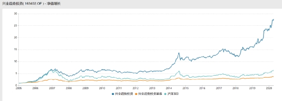 兴全趋势投资成立于2005年11月3日,也是成立于大牛市的前夜,属于成立在较好做投资的之际。目前这只基金成立以来获得2679.35%的收益,背后王晓明和董承非这两位优秀基金经理功不可没。其中王晓明从基金成立之初开始管理该基金,一直到2013年10月28日卸任,接近8年时间带来近5倍的回报。而董承非接过这个绩优基金再续了辉煌,目前他仍在管理兴全趋势,任职期间取得368.42%的回报(截至最新数据),排名同类基金前列。而该基金目前规模为352.54亿元(2020-12-31)。