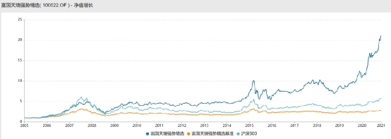 富国天瑞强势精选同样是2005年成立的产品,成立以来收益率也有2136.49%。该基金前后有四任基金经理,首任基金经理徐大成一直管理到2007年6月15日,期间获得了差不多三倍回报;随后有宋小龙、贺轶管理,现任基金经理厉叶淼从2016年2月2日开始管理,任职总回报达到288.68%,表现不俗。