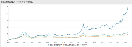 富国天惠精选成长也是比较传奇的基金,该基金成立于2005年11月16月,一直是由朱少醒担纲基金经理,从来没有换过,也是行业内“10倍牛基“中唯一一只成立以来没有发生基金经理变更的基金。朱少醒持续管理超过15年,是现任基金经理(主动型)中持续管理单只基金时间最长的。富国天惠精选成长成立以来获得2368.64%的收益,基本每年保持在前三分之一左右的位置,朱少醒喜欢投资成长股,特色是“淡化择时,精选个股”,始终如一的风格和选股能力,加上复利效应成就了一只牛基。