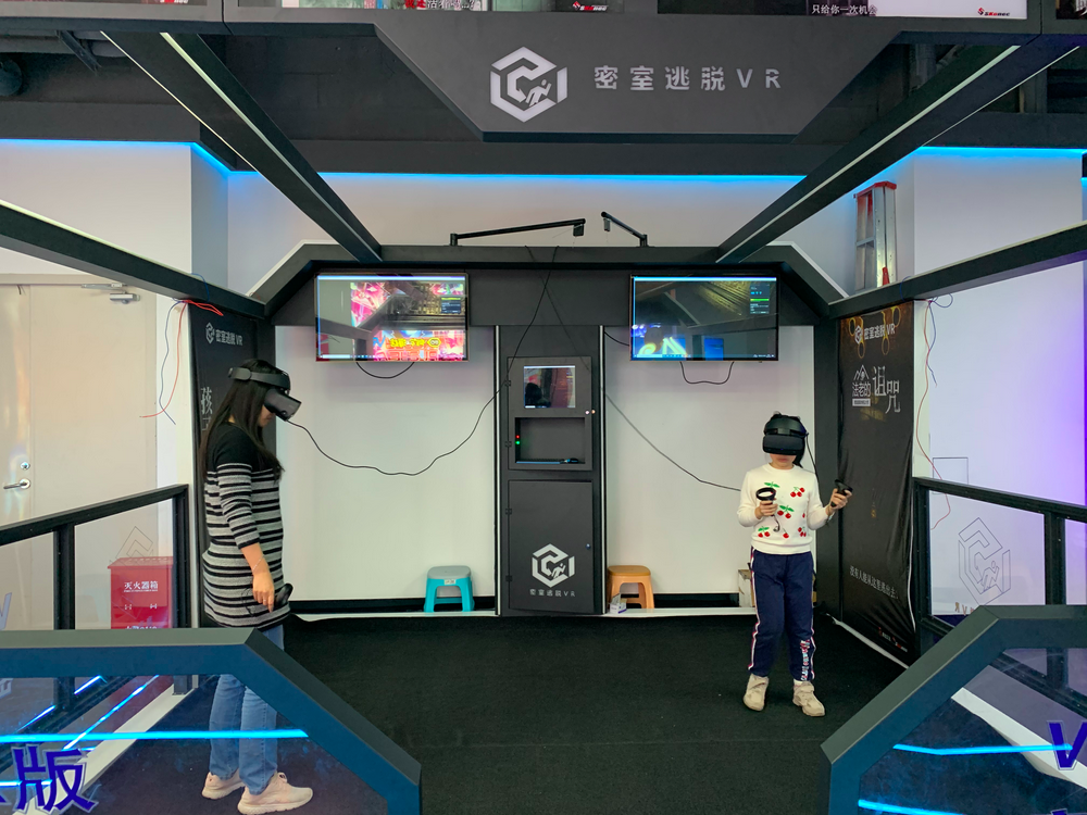 一块为射击游戏区,消费者戴上VR头盔、手持枪械,眼前即呈现特定的虚拟场景,进行打怪射击、密室逃脱;