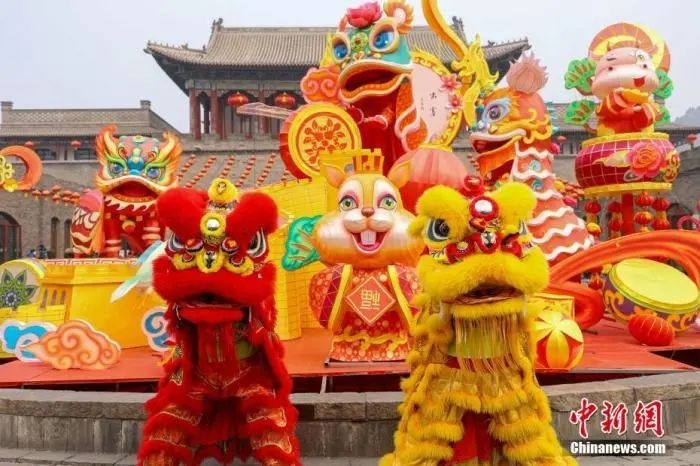 图为春节期间,游客在长城脚下体验节庆民俗。中新社发 孙靖 摄