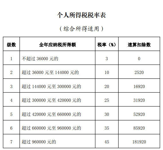 2020年度的个税综合所得