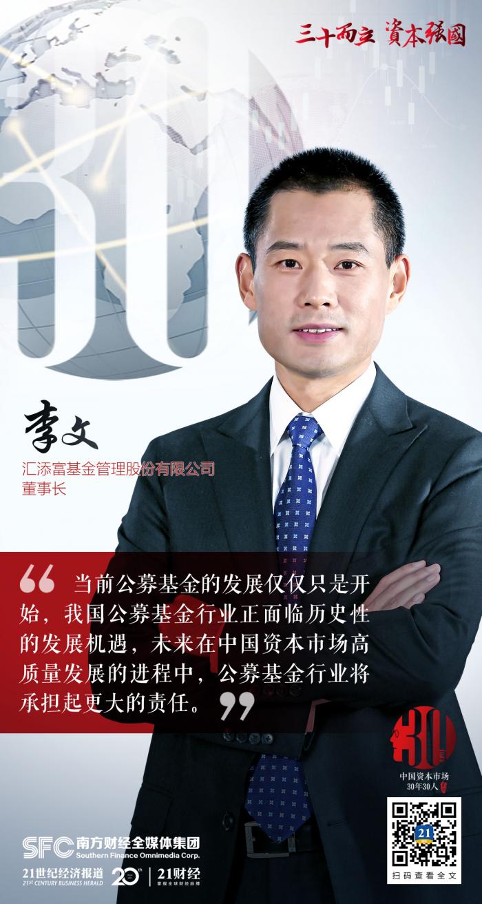 中国资本市场30年30人丨 专访汇添富基金董事长李文:公募基金目前的发展仅是开始