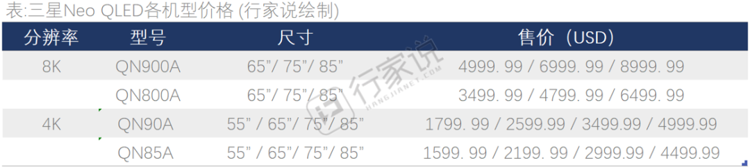 此外,三星Neo QLED 8K QN800A,三星Neo QLED 4K阵容在2021年也有了新的机型,并公布了价格。