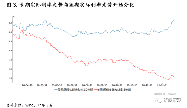更重要的是,实际利率也开始往上走,和名义利率一样,长端实际利率往上走得要更明确一些,这说明市场确实在定价再通胀预期,即使央行压住短端利率,但在财政积极、全球房地产复苏的确定性趋势下,只会进一步增强市场未来再通胀预期的信念。