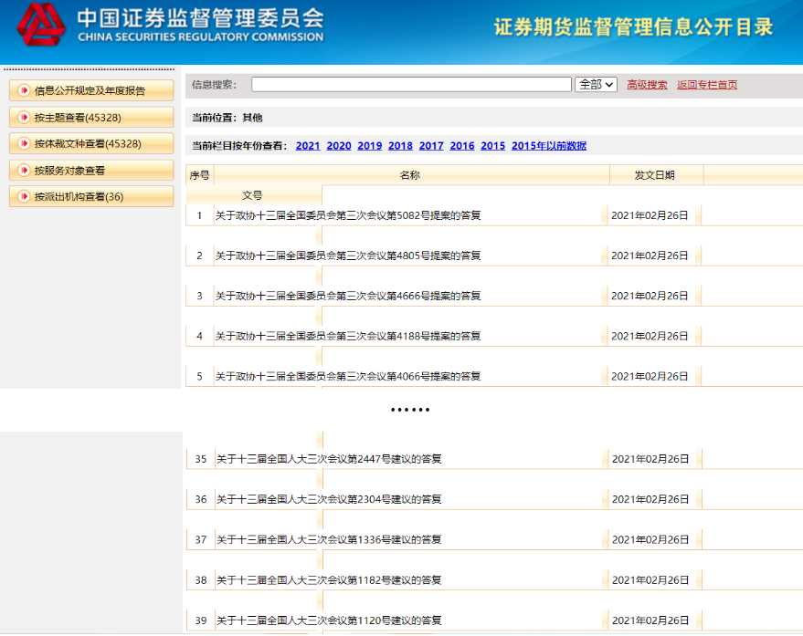 自我国资本市场深化改革以来,金融市场空前繁荣,为应对市场发展需求、保障投资者权益、落实市场主体服务工作,证监会广泛听取群众意见,于2月26日晚就人大代表和政协委员提出的39条重要提案/建议进行了统一答复。