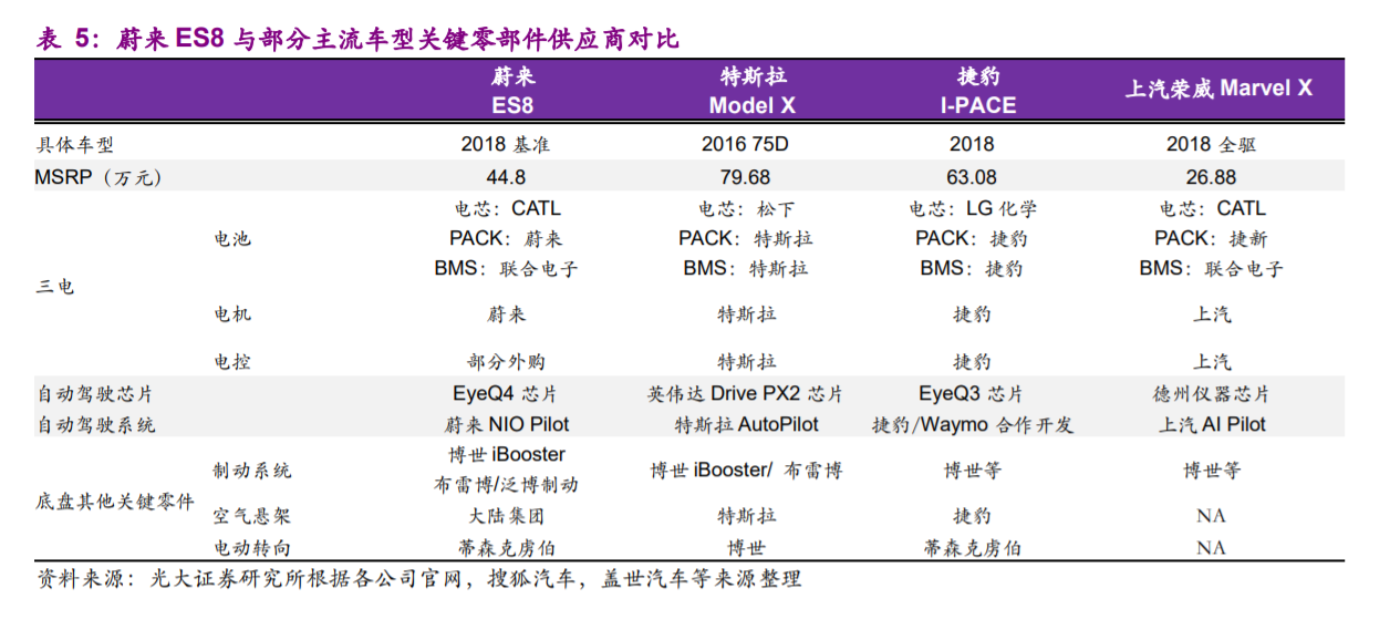 在以电池、电机、电控为主的三电核心中,蔚来仅在电池PACK、电机上使用自家技术,电池电芯、BMS以及电控方面都采用供应链提供产品。相对而言,特斯拉在三电核心领域几乎已完全自主化,同时在自动驾驶芯片领域也已深耕多年,采用自家驾驶芯片的好处是大大降低了生产成本,并进一步掌握自动驾驶技术主动权。