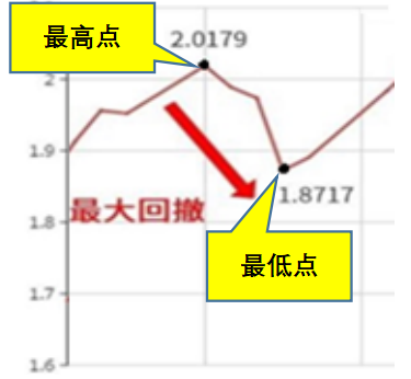 某只基金在2020年基金净值最高点是2.0179元,在2020年的最低点是1.8717元,那么该基金在2020年最大回撤率就是7.25%。