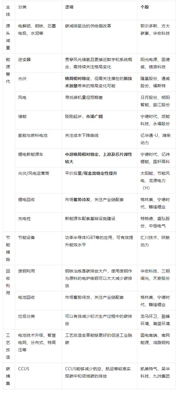 目前比较成熟的路径有:工业领域的钢铁电炉、废钢利用、水泥协同处置、再生铝等,道路交通领域的电动车与充电桩,能源领域的清洁能源,建筑领域的电气化与空气热泵、装配式建筑等,以及消费侧的绿色出行、垃圾分类等;