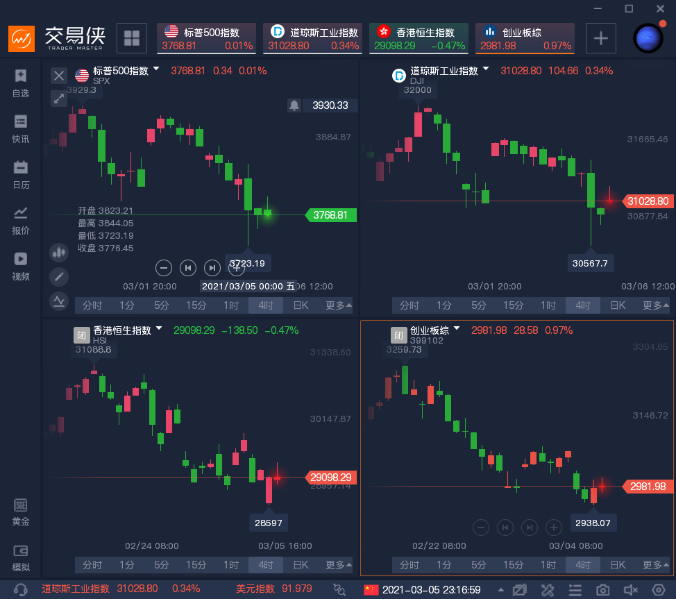 全球股市本周遭遇大跌。美股三大股指中纳指跌幅最深,截至发稿本周累跌超4%,标普500指数微跌1%。亚太股市也表现不佳,恒指险守29000大关;A股走势震荡,周四创业板指跌近5%,深证成指也跌超3%。