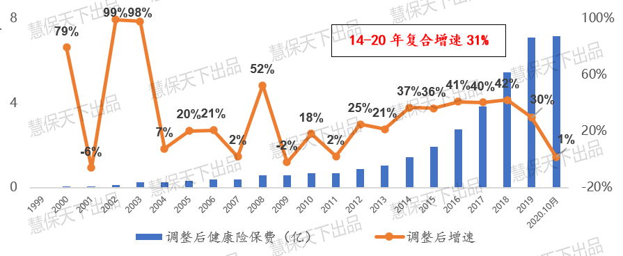 注:调整后为剔除安邦、和谐健康、人保健康健康险数据。
