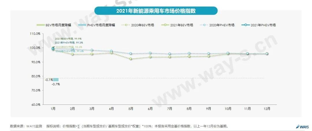 1月,纯电动市场价格指数小幅下降,环比下降0.1%,比去年同期高1.3%;插电混动市场价格指数环比下降0.7%,比去年同期低0.3%。