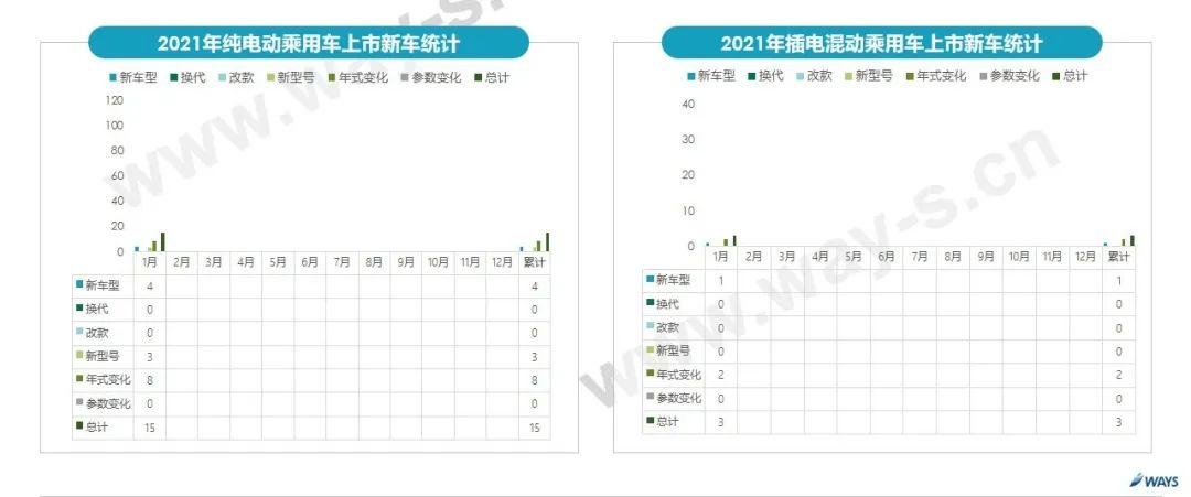 1月上市车型数量共计18款,其中纯电动乘用车有新车型4款,年式变化8款,新型号3款;插电混动有新车型1款,年式变化2款。