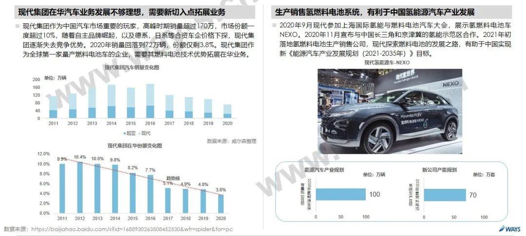 1月18日,现代集团宣布在广州市成立氢燃料电池系统生产销售公司。新公司作为氢燃料电池系统的生产基地,将于2月末正式奠基,2022年投入量产。由此,现代集团成为首家在华建立氢燃料电池系统生产基地的全球汽车厂商,也是现代集团在全球建立的首个海外氢燃料电池生产基地。