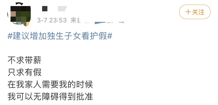 在育儿假前有“母”,这是过去非常正常的,现在加了一个“父”,这是不是对网友期待的回应呢?我觉得这至少是要开始探索实施了,我们的家乡,我们的所在地是不是在探索范围之内呢?我希望我的这段话能上热搜,因为上完热搜之后探索实施的速度应该会更快一些。