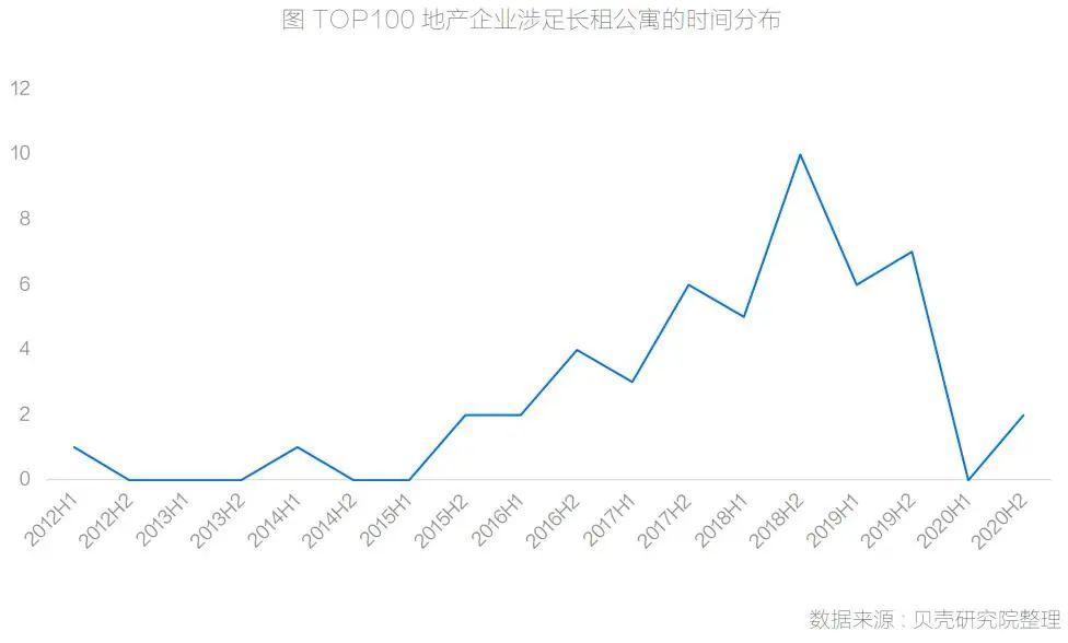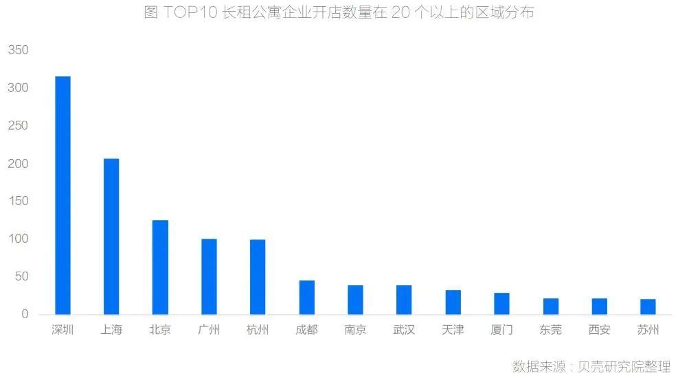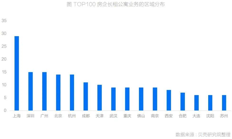 长租企业拓展速度放缓,长租公寓的热情减退。截止目前,依据我们对公开信息的统计,TOP100房企中已有近五成涉足长租公寓,其中2017到2019年涉足长租公寓业务的房企占比超过75%。据统计,房企为租赁市场提供的机构化房源占比超两成。2020年TOP100房企中仅2家新开拓长租公寓业务。依据我们不完全统计,去年疫情影响下,长租企业的城市选择较为集中,普遍选择较审慎的布局方式,北上广深杭为房企长租公寓布局战略高地,其门店数量最多的前五个城市也为北上广深杭,在北京、上海、深圳等13个城市的数量占TOP10门店总数的近85%。