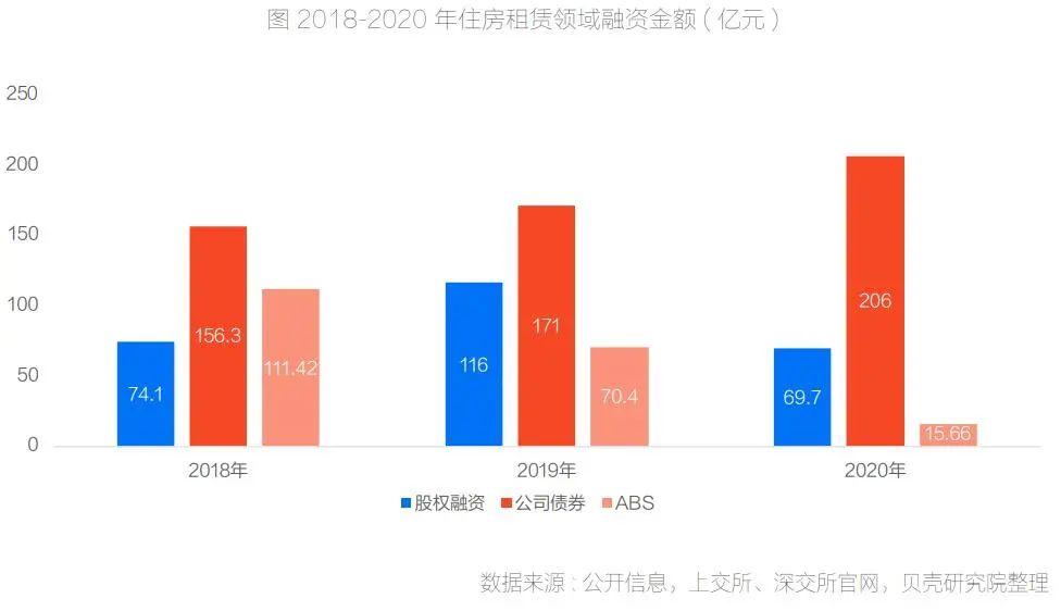 企业融资难度增加,渠道收窄,总体融资金额呈现下降趋势。一是长租公寓企业受制于单一的抵押担保方式,参与债权融资有难度。如银行贷款、CMBS等要求抵押物业所有权,目前的发行主体多为开发企业,大部分转租模式的长租公寓企业无资产可抵押,难以通过此类融资渠道募集资金。二是长租公寓股权融资已进入谨慎投资阶段,在行业早期,成立于北京、上海等一二线城市的头部企业更容易获得资本青睐,2020年长租公寓企业获得股权融资的规模显著下降。三是ABS发行规模减小,ABS更适用于租金收益良好、运营能力强的头部企业。ABS发行审批严格,需对企业历史经营情况、租约履行情况、租客信用等进行考评,多数企业难以达到要求。四是国内类REITs产品面临流动性、底层物业适用性及双重征税等问题,尚不具备标准化REITs的发行条件。