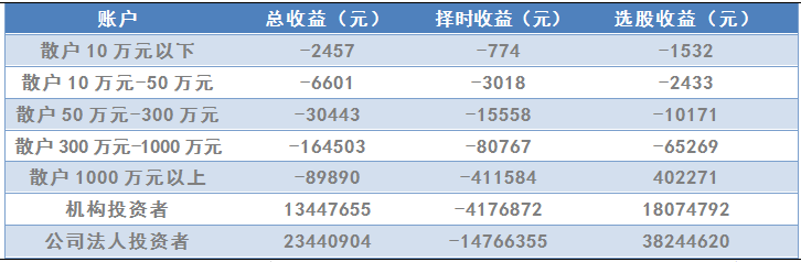 图2:上交所各类散户、机构投资者、公司法人投资者的投资收益对比