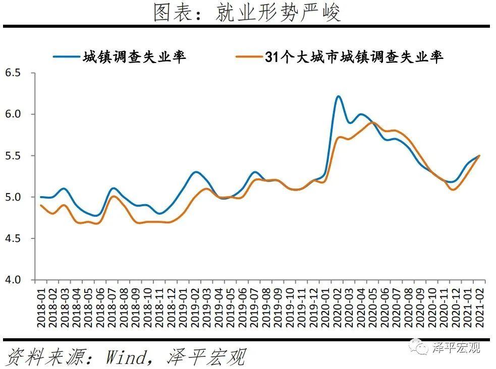 就业形势严峻。1-2月,全国城镇新增就业148万人。1月全国城镇调查失业率为5.4%;2月全国城镇调查失业率为5.5%,较去年同期回落0.7个百分点但较去年12月上升0.3个百分点。其中,25-59岁人口调查失业率为5.0%,较去年同期回落0.6个百分点但较去年12月上升0.3个百分点。