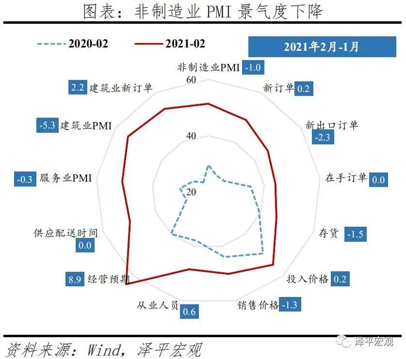 1)建筑业景气度有所下降。2月建筑业商务活动指数为54.7%,较上个月下滑5.3个百分点,景气度有所下降。与天气、春节、房地产调控以及地方财政吃紧有关。从市场需求和预期看,新订单指数和业务活动预期指数分别为53.4%和68.2%,高于上月2.2和14.6个百分点。