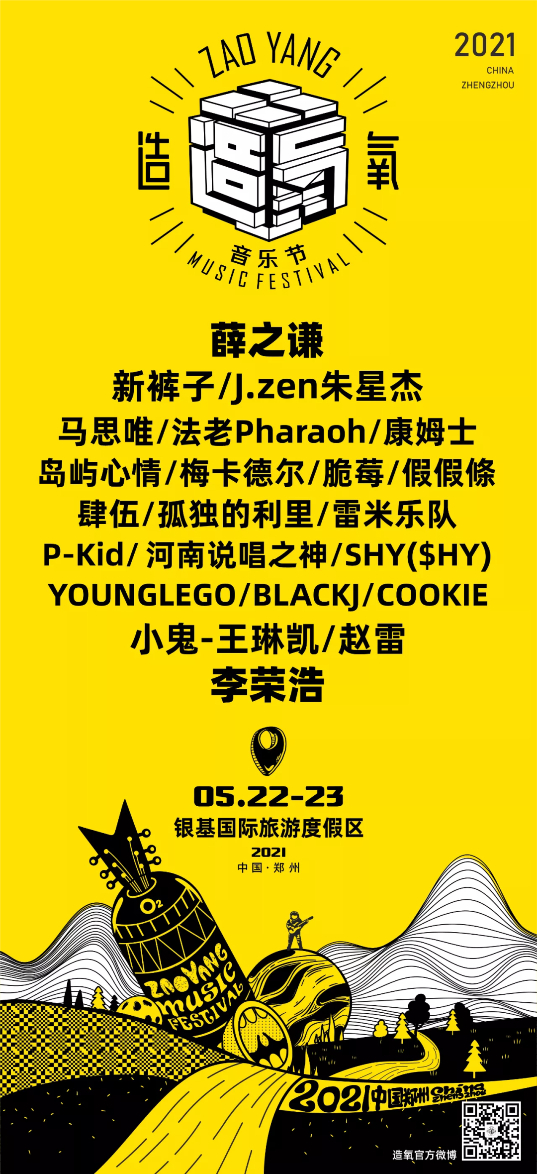 · 3月15日,造氧音乐节全阵容官宣:薛之谦、新裤子乐队、朱星杰、马思唯、法老、康姆士、岛屿心情乐队、梅卡德尔乐队、脆莓乐队brickleberry、假假條、肆伍乐队、孤独的利里、王琳凯、赵雷、李荣浩等,音乐节将于5月22日至23日在郑州银基国际旅游度假区举行。