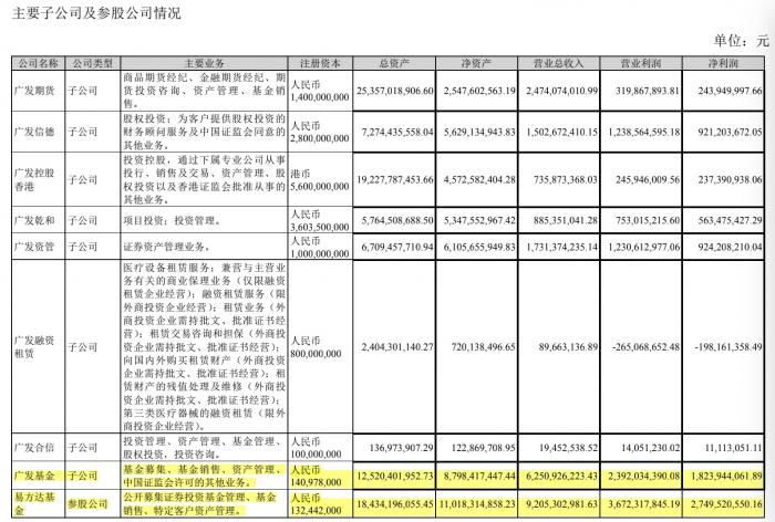 广发证券主要通过控股子公司广发基金和参股公司易方达基金开展公募基金管理业务。