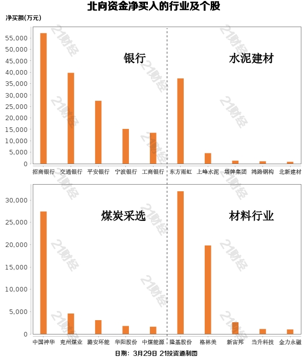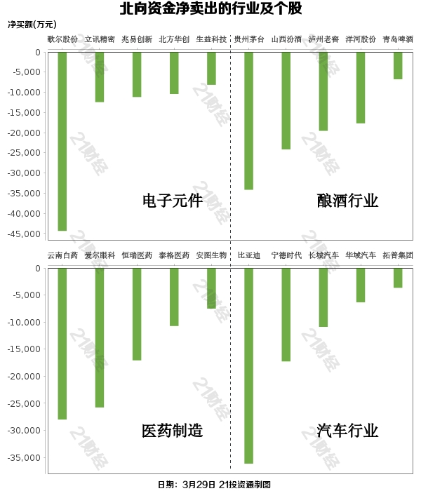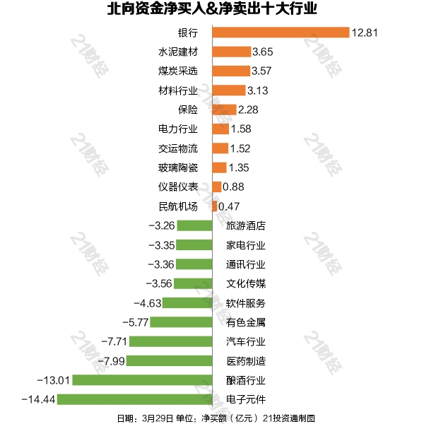据21投资通(微信号ID:touzit21)智能监测,3月29日,北向资金净卖出58.43亿元,其中沪股通净卖出26.4亿元,深股通净卖出32.03亿元。