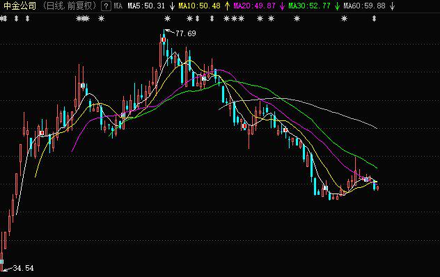 到了1月中旬后,中金公司股价一直在下跌,目前股价已不足50元,距离高点跌去了36%左右,市值缩水了1300多亿。