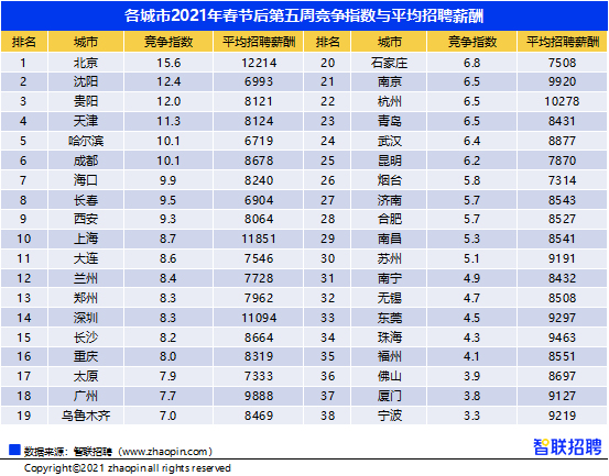 (二)2021年节后五周[4]招聘职位数超去年85.5%,追平2019年