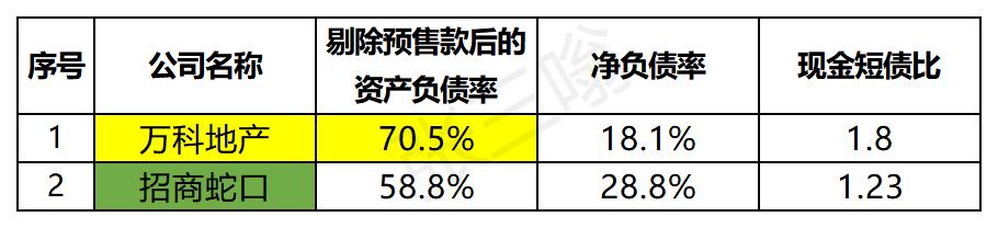万科、保利、绿地、招商蛇口四家A股公司中,万科和招商蛇口也已经发布了2020年年度报告,万科剔除预售款后的资产负债率达70.5%,刚好超线,为“黄色档”房企;招商蛇口“三道红线”均未碰触到。