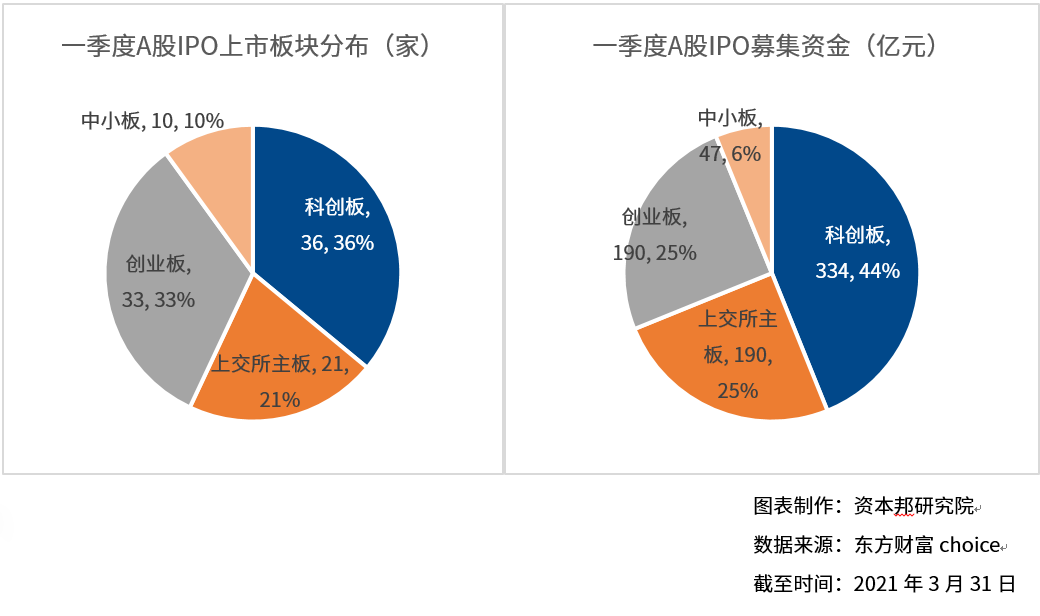 2021年一季度A股IPO盘点:共100家企业上市,累计募资761亿