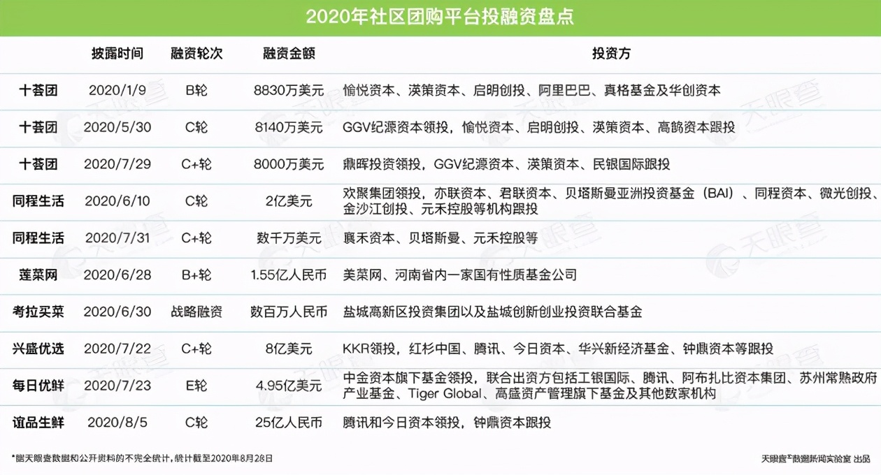 资金是最重要的,需要快速烧钱砸市场。但这又是最不重要的,因为社区团购的几个主流玩家没有谁差钱。即便是一些看起来不知名的公司,其背后可能就站着阿里或者腾讯;据天眼查APP检索显示的数据来看,去年国内社区团购和生鲜电商领域融资额达百亿元,行业热钱涌动。除非各个巨头以及各大投资人真的不顾一切打起持久战,否则靠补贴是烧不出来胜者的。