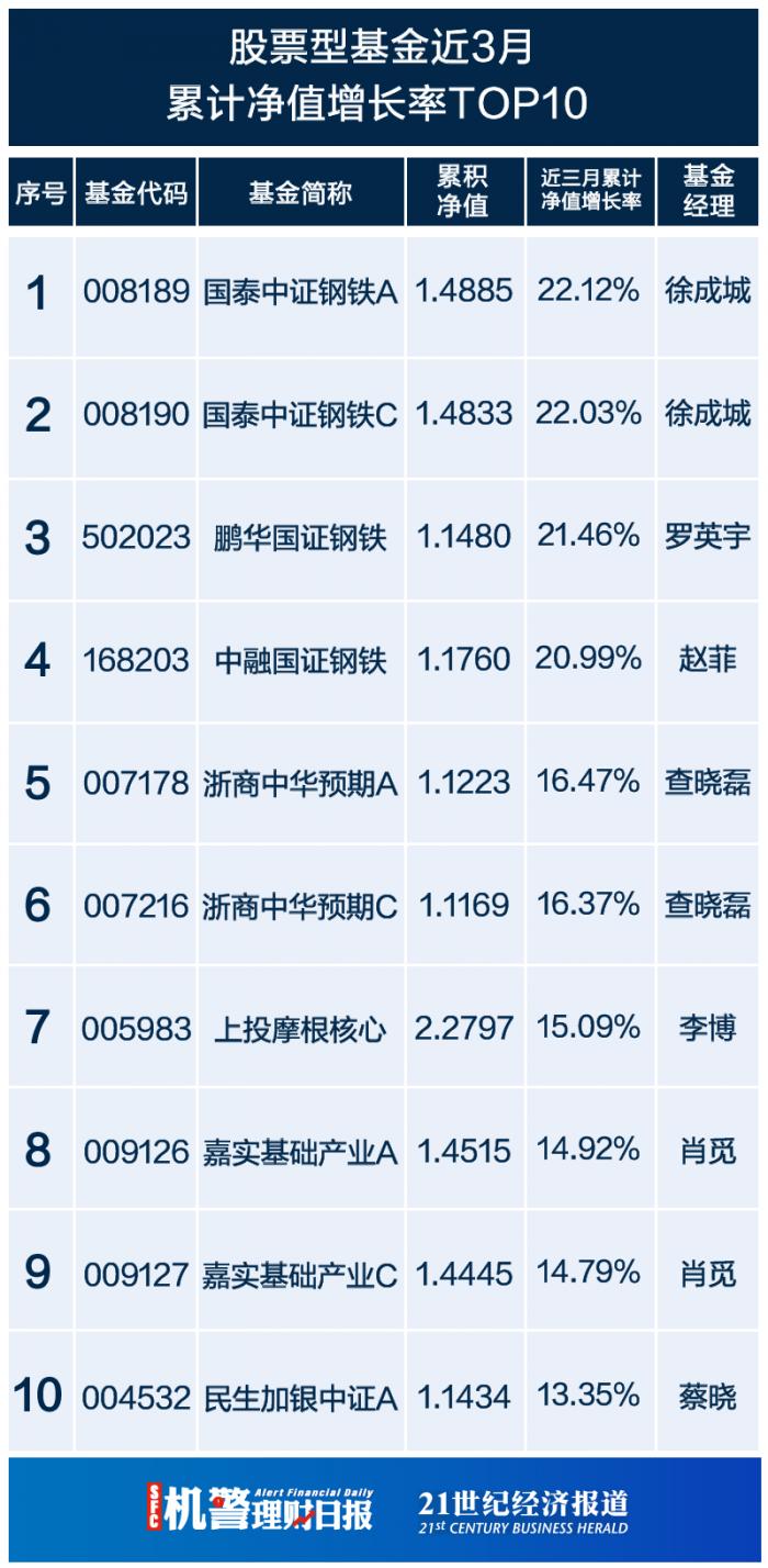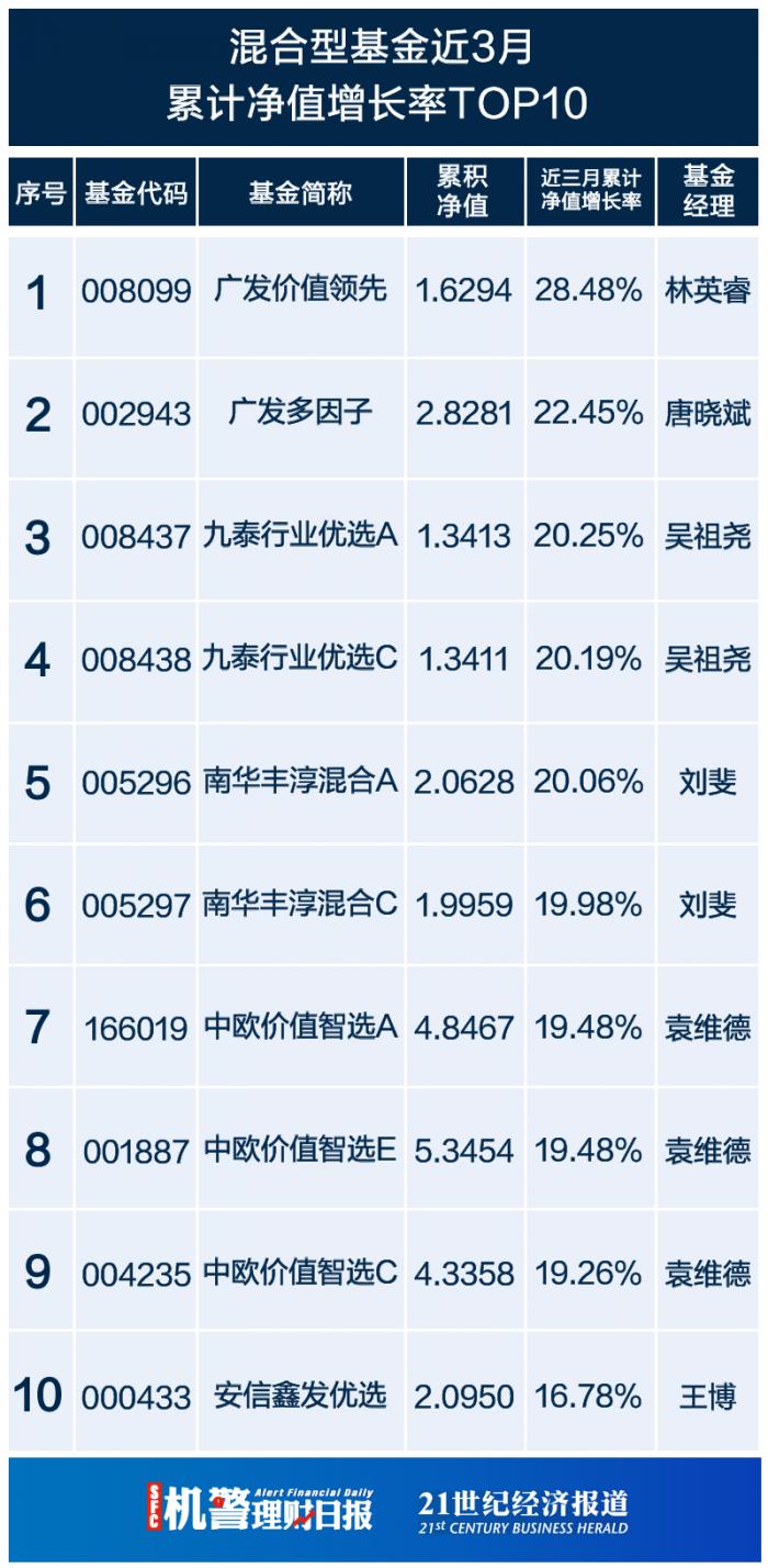 1、南财理财通【基金风云榜】基金近3月累计净值增长率TOP10